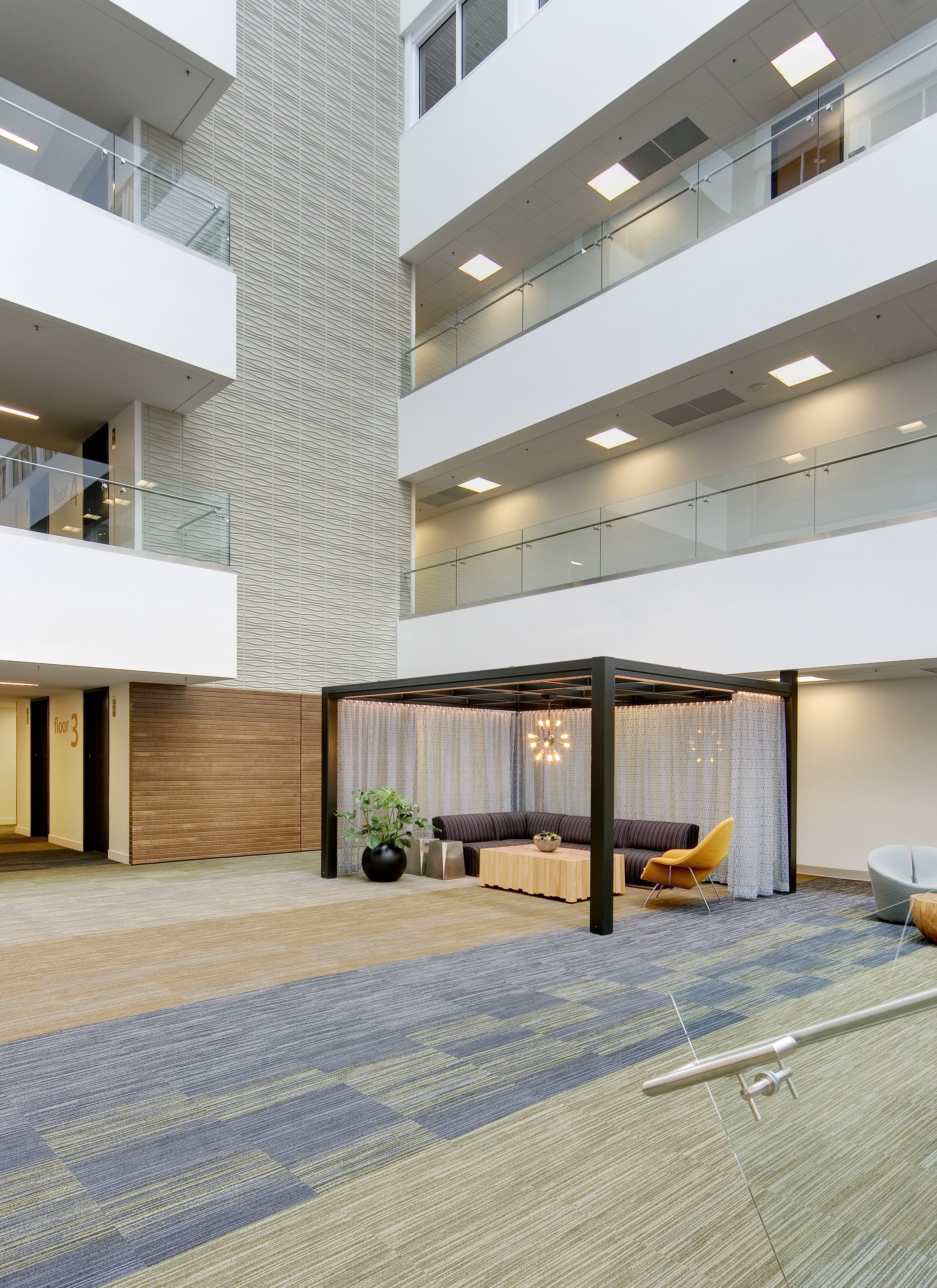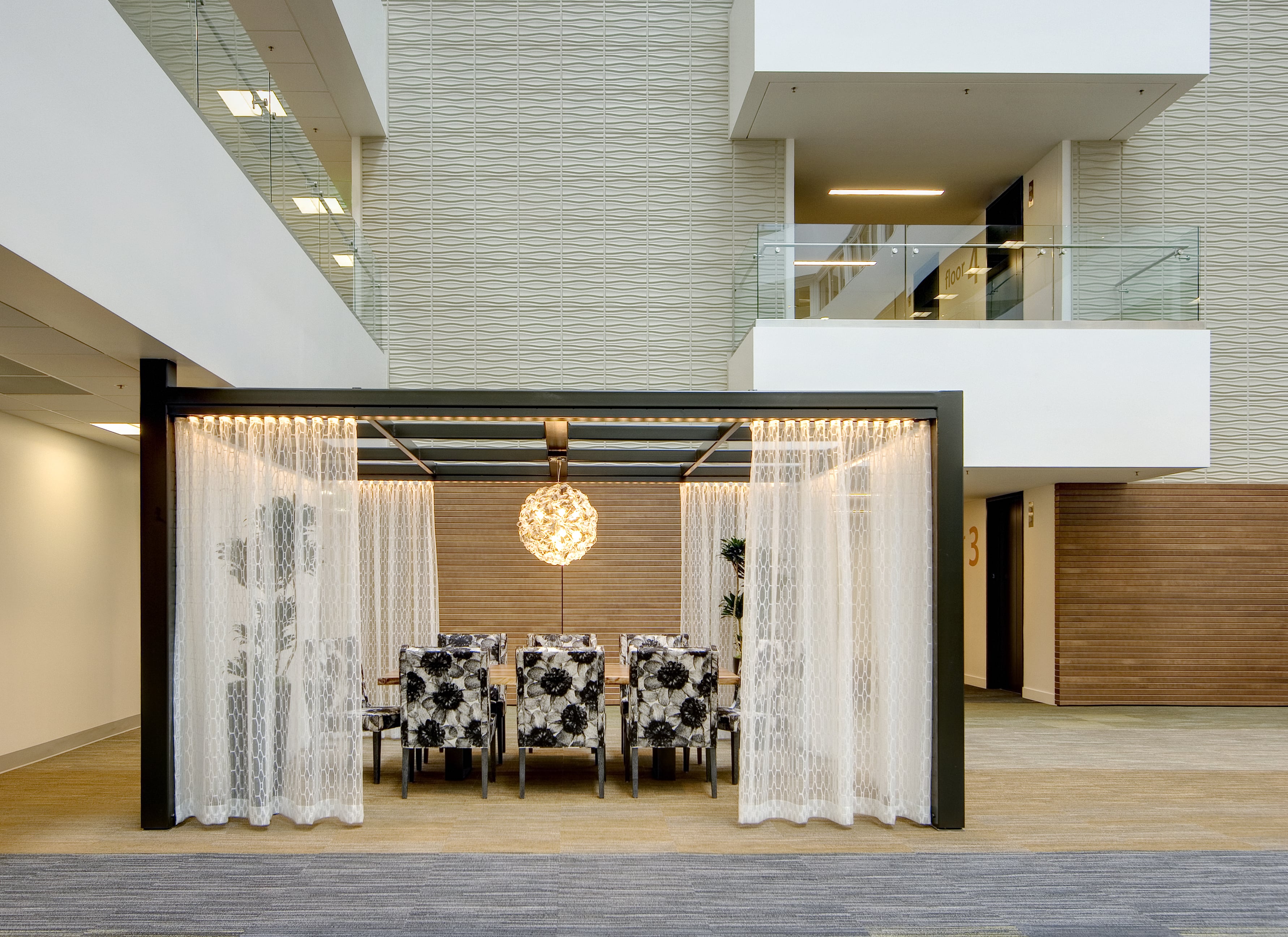 The introduction of Custom Meeting Pods helped to breakup and activate the lower level.