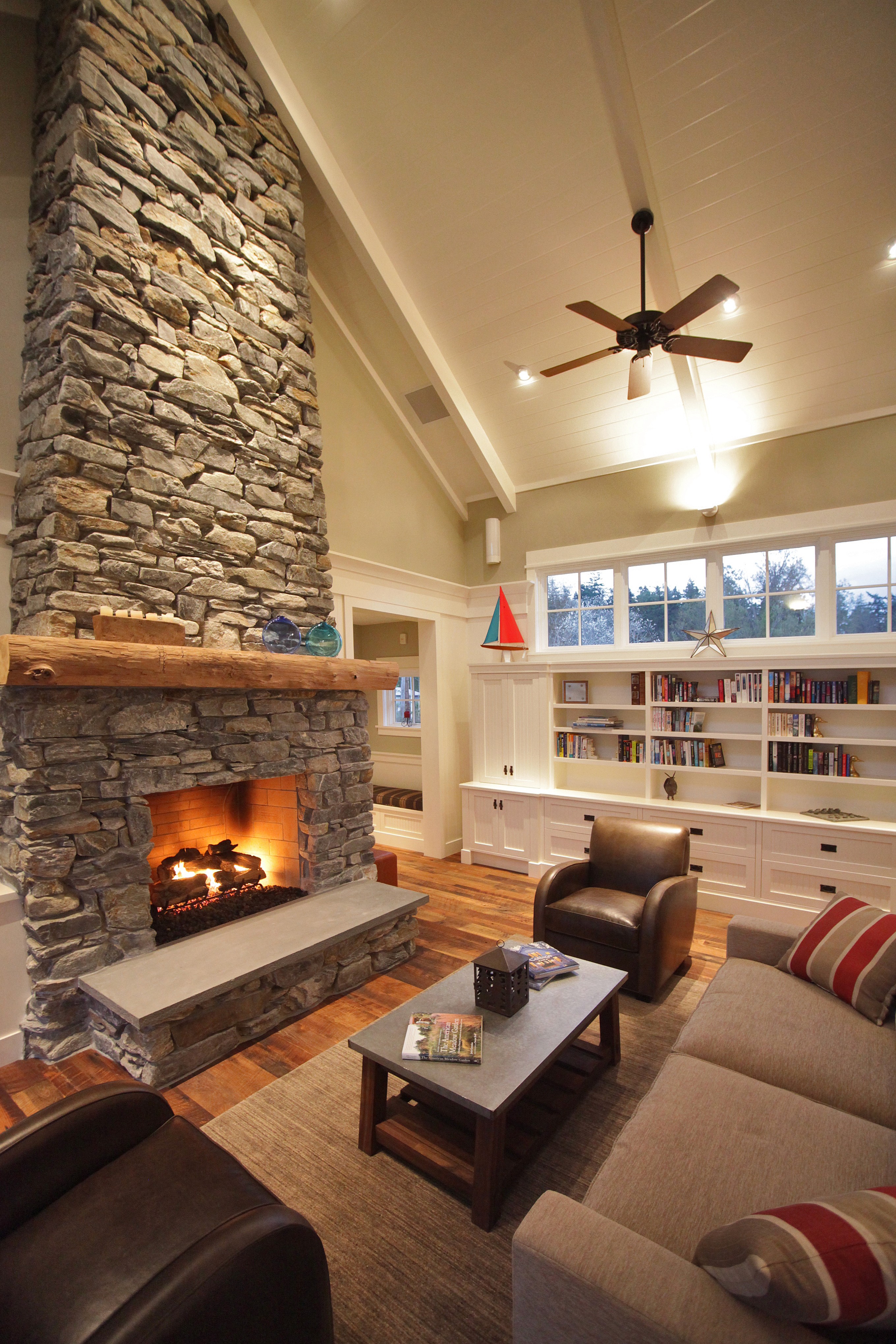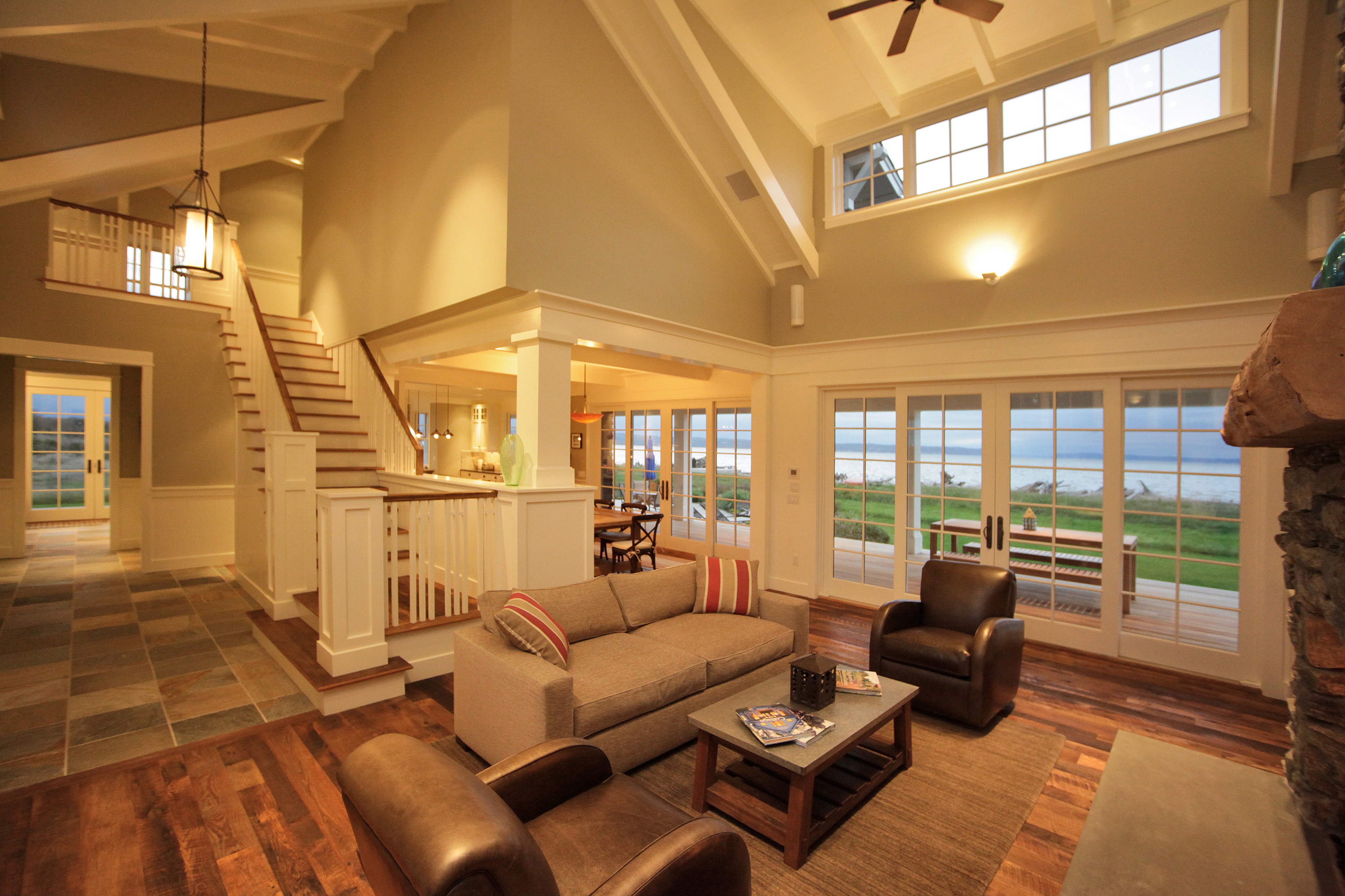 Beam, truss, and window detailing is maticulasly carried throughout the home.