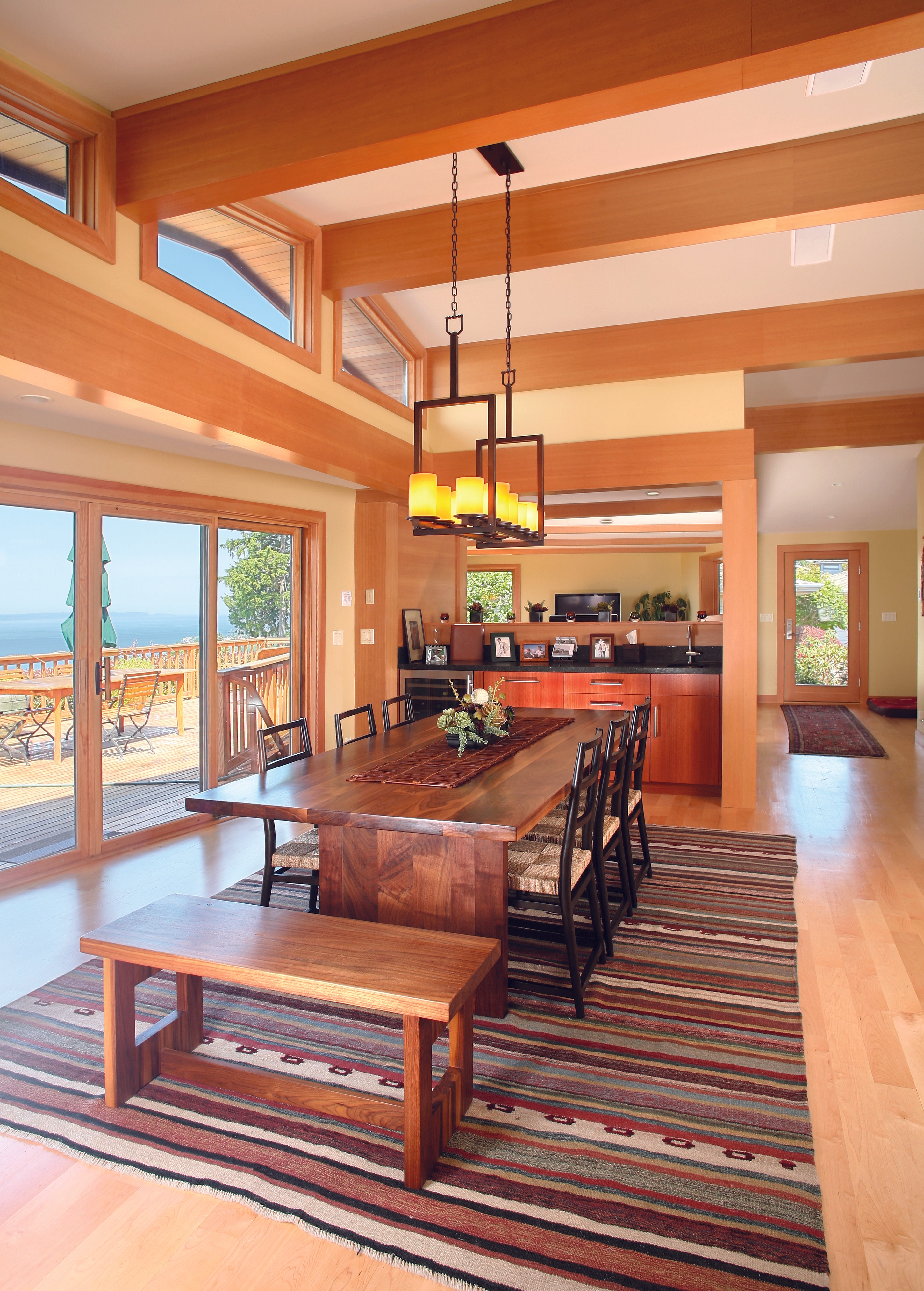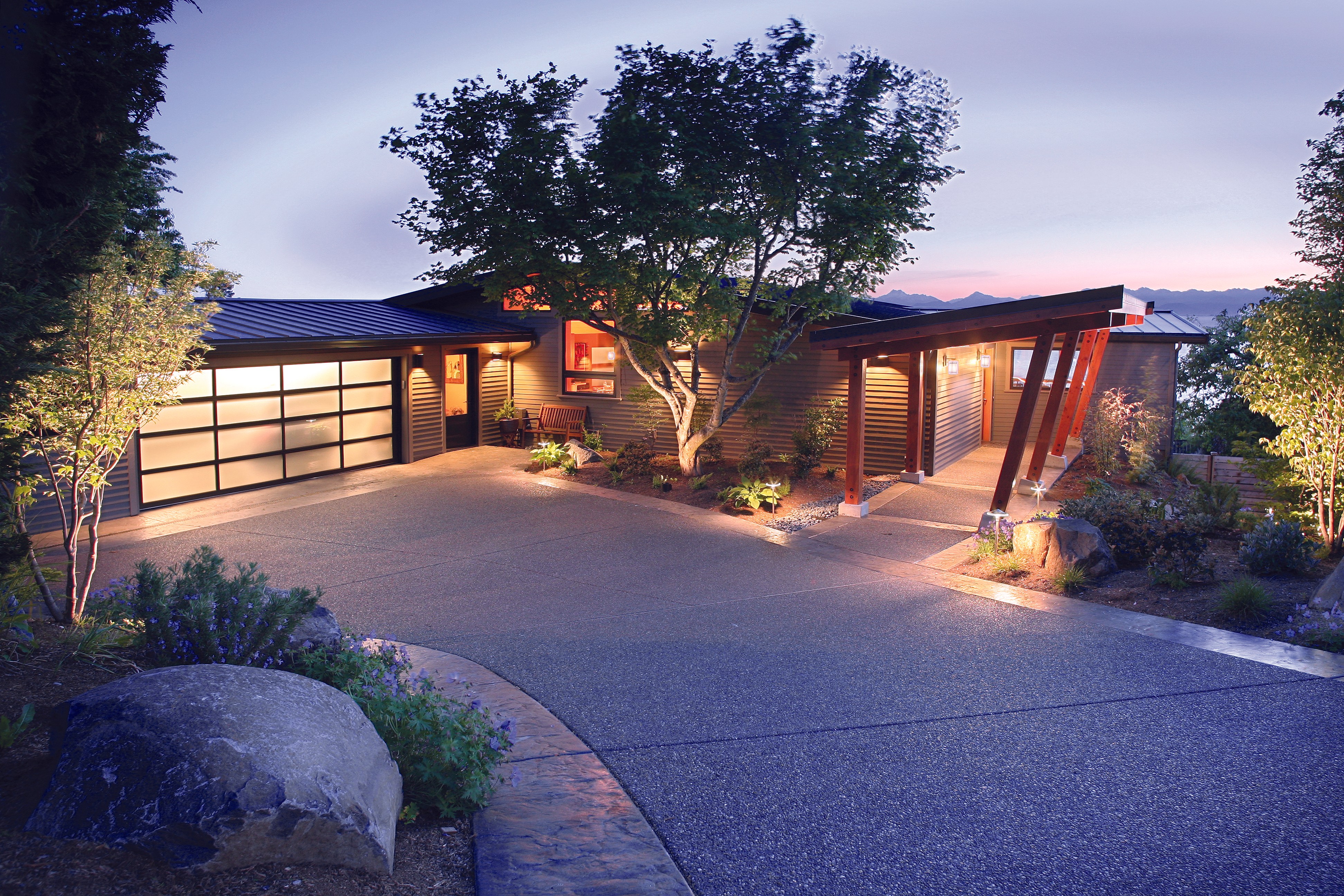 This 1970s North Seattle home was reimagined into a contemporary yet warm living environment. While preserving the original shell, Eric introduced natural wood details to create a covered entry and extended this detailing throughout the interior. The design opened up the floor plan and added larger windows, flooding the living spaces with natural light and creating a modern, inviting atmosphere.