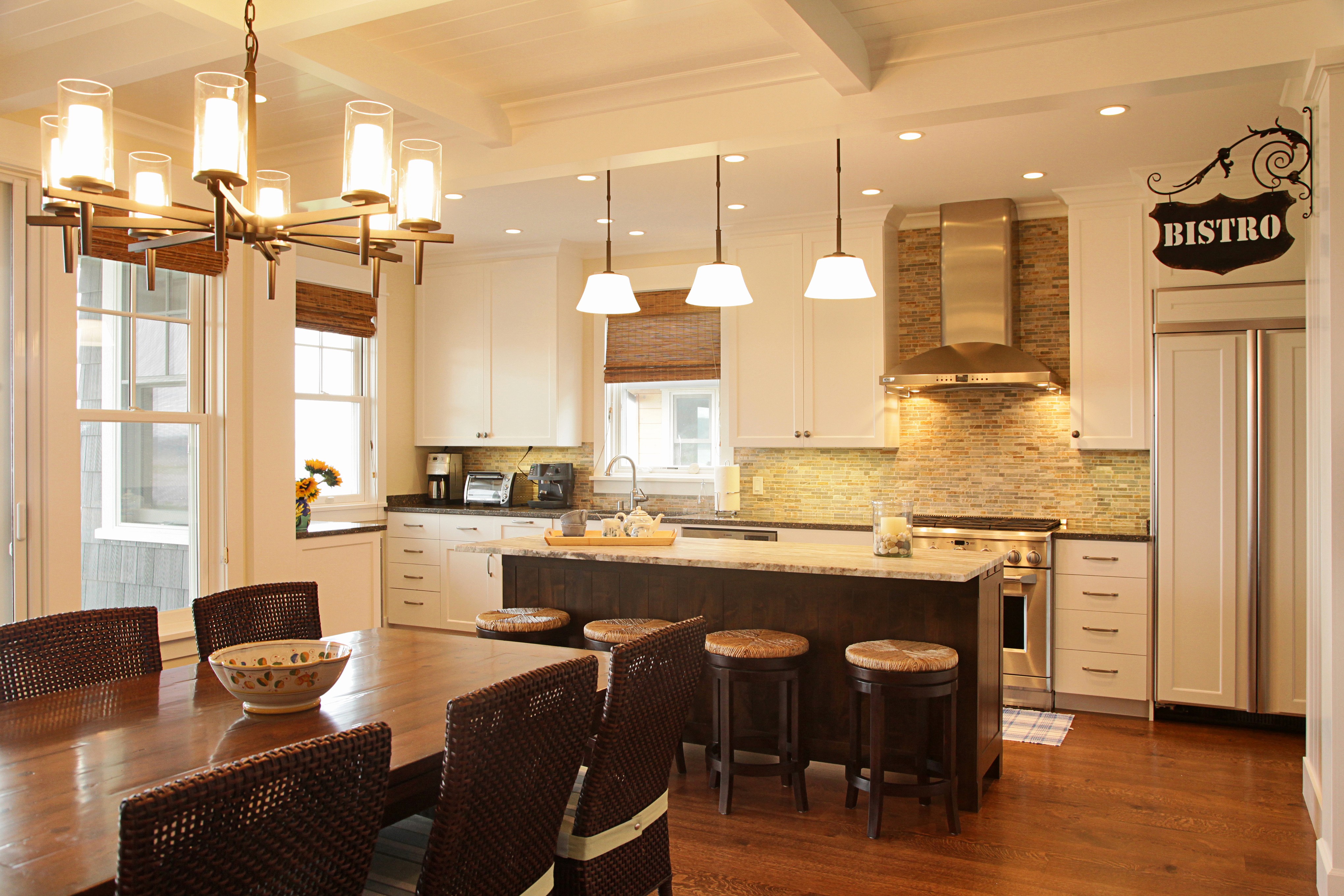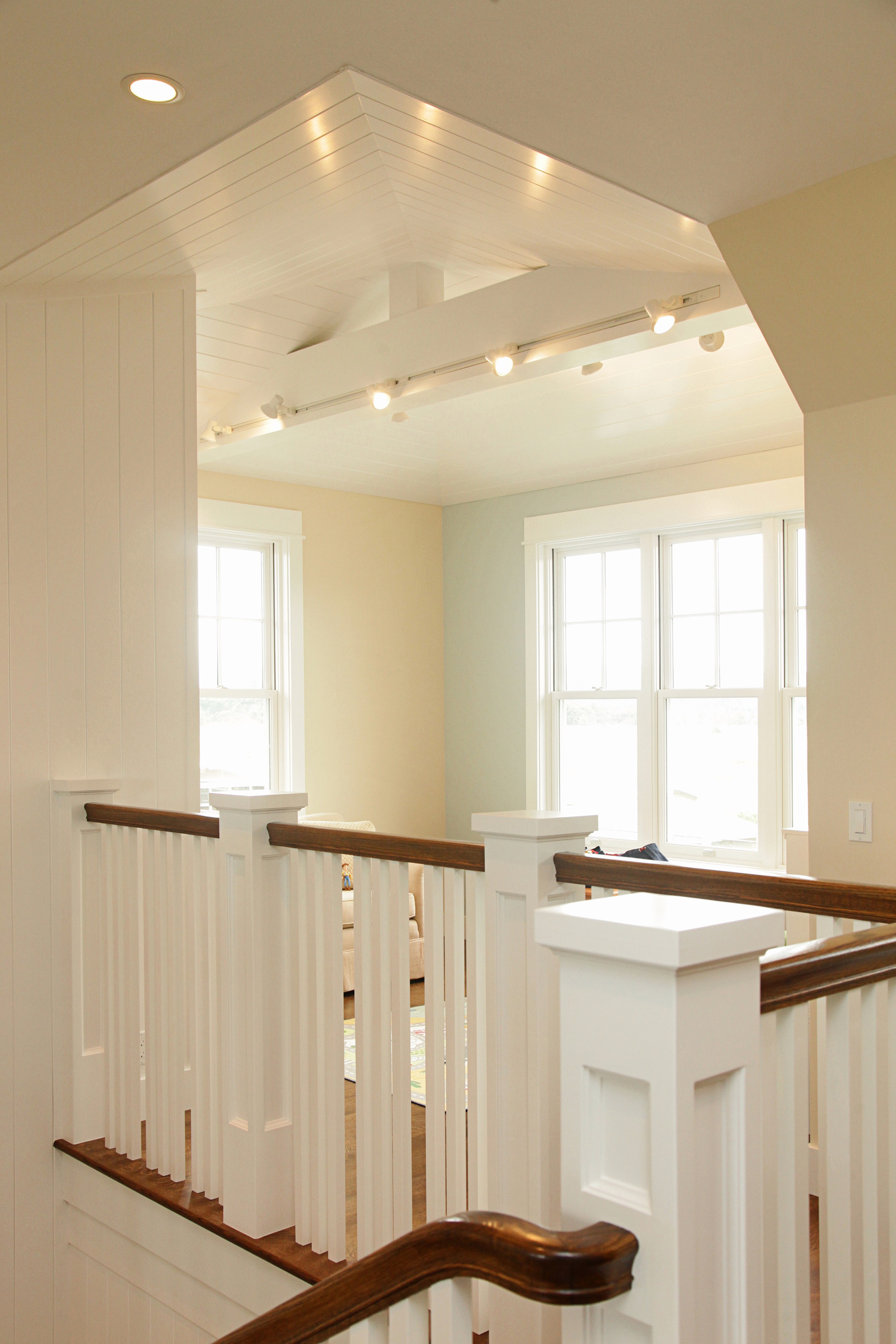 Coffered ceilings and painted ship lap details throughout, give this new home its clean, yet classic beach cabin feel.