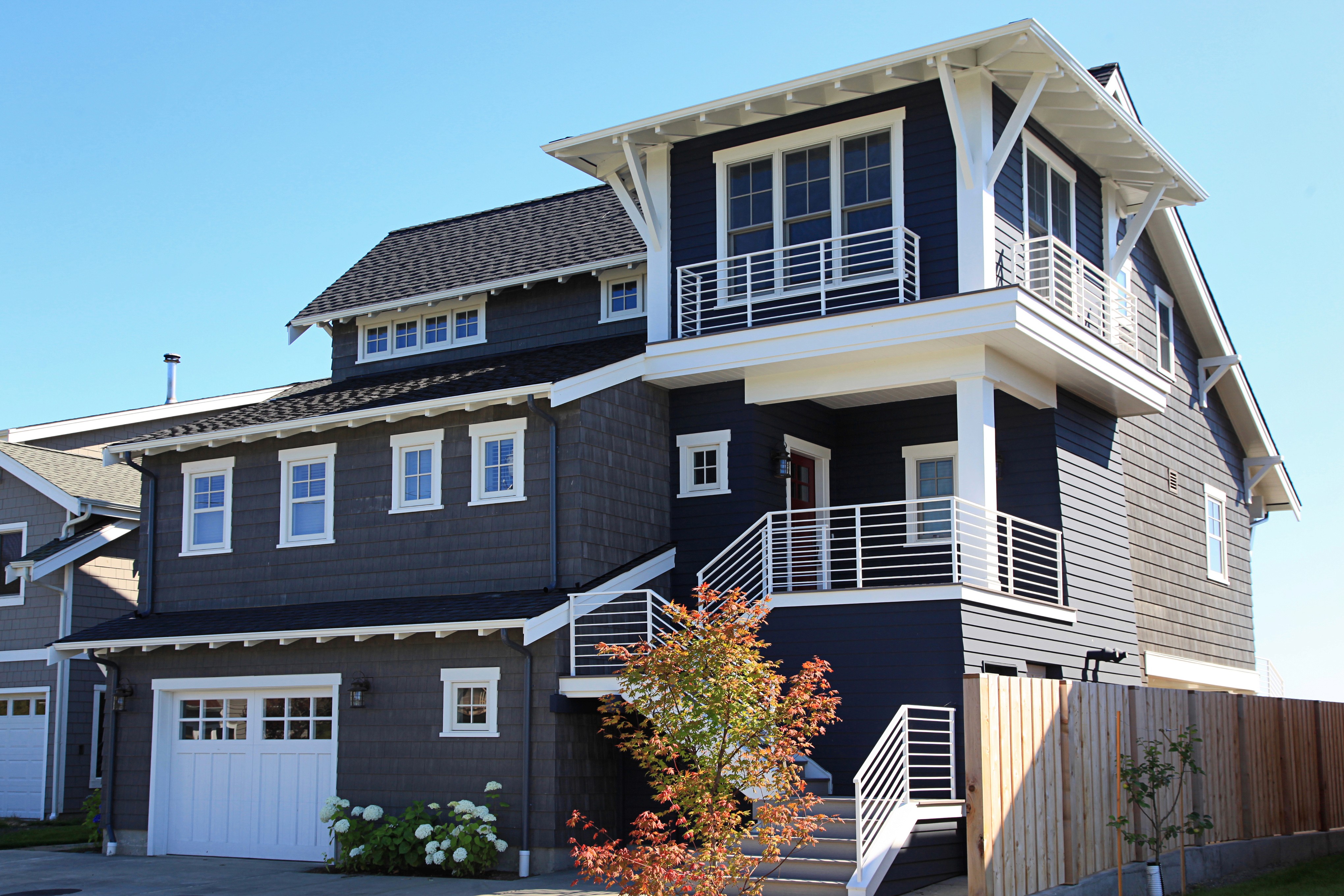 This energy-efficient beach cabin packs a lot onto its small, challenging site. Durable materials were a requirement for low maintenance and to withstand the harsh beach wind and weather. Energy efficiency is gained with solar panels hidden on the upper roof and vertical geothermal wells under the driveway. Playful detailing and expansive windows create a light-filled retreat with a classic cabin feel.